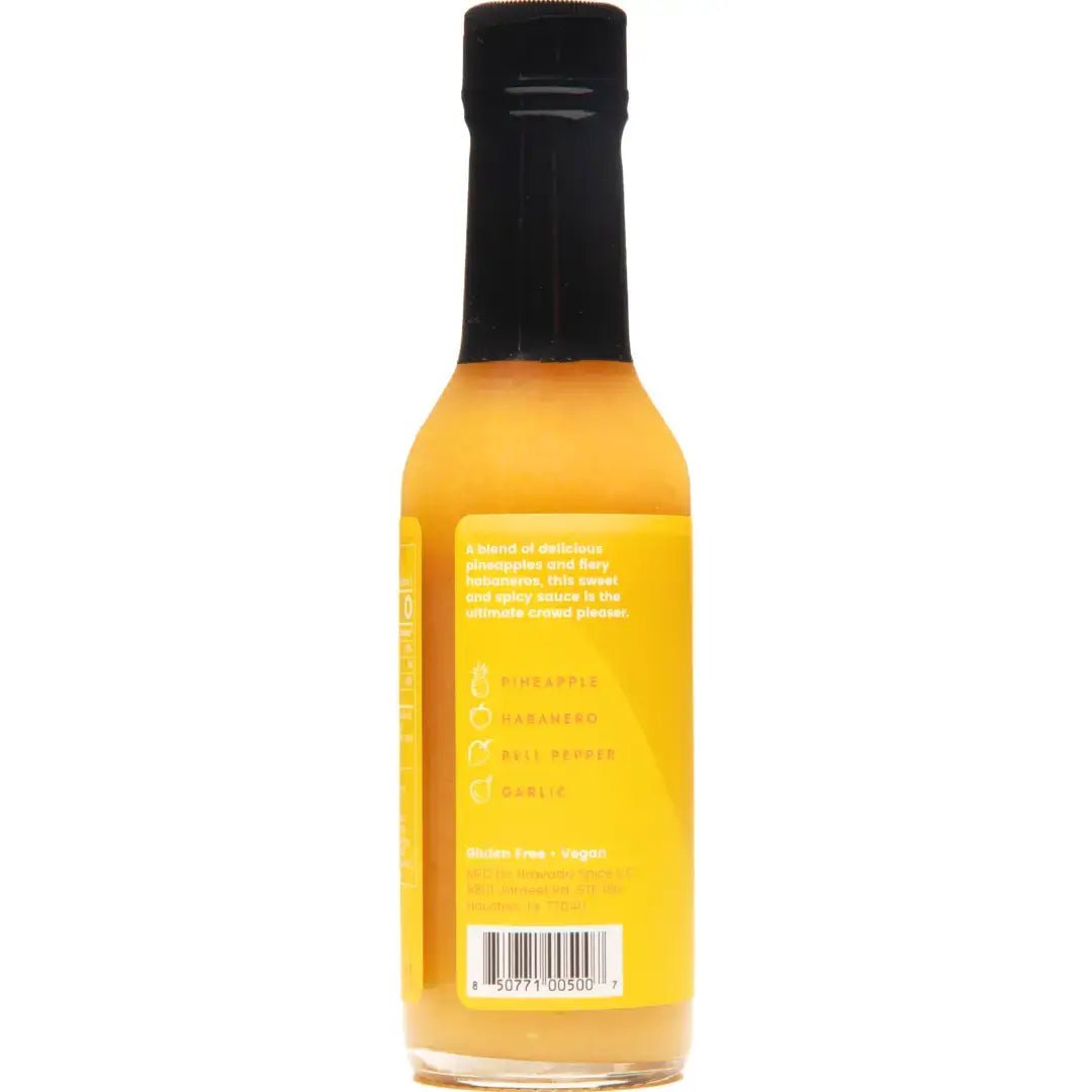 A blend of fresh pineapple and fiery habanero peppers with notes of yellow bell pepper and garlic, this sauce is the perfect balance of sweet & spicy. Use this hot sauce in your favorite pineapple ham glaze recipe, add a fresh spin to Asian-American classics like sticky pineapple chicken and fried rice or drizzle over Hawaiian pizza, grilled fish or Baja fish tacos. Pineapple Distilled Vinegar (Diluted With Water to 4% Acidity) Yellow Bell Pepper Orange Habanero Pepper Puree (Orange Habanero Peppers, Salt, Acetic Acid) Garlic (Garlic, Water) Sea Salt We don't use dyes or artificial preservatives in any of our products. Just as Mother Nature intended.